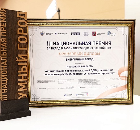 Министерство ЖКХ Подмосковья также получило бронзовую медаль в номинации «Энергичный город» за проект автоматической передачи показаний общедомовых приборов учета в многоквартирных домах (МКД). На данный момент программное обеспечение установлено в 135 пилотных МКД, что позволяет более чем 15 тысячам жителей удобно передавать показания счетчиков.
